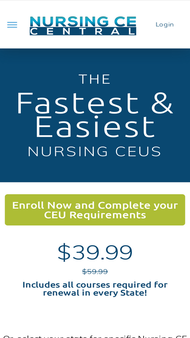 88%Need to log into your Nursing CE Central account? Click here to go the account login page.
