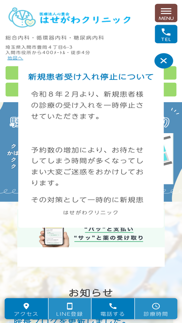 63%埼玉県入間市で内科・循環器内科・糖尿病内科をお探しなら「はせがわクリニック」にご相談ください。入間市役所そばにある当院では、心臓病や糖尿病、睡眠時無呼吸症候群にも対応しており、健診や予防接種も行っています。