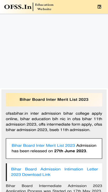 100%Bihar board 11th admission 2025 merit list, offs, ofss bihar 11th admission 2025 intimation letter, offs intermediate form apply, ofss portal, govt. of bihar,