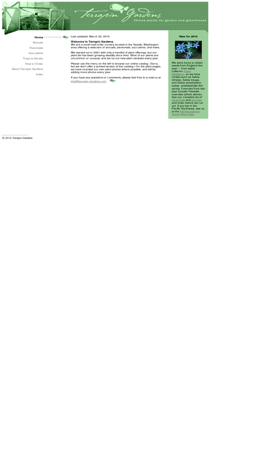 61%the terrapin gardens online catalog, which features selectperennials, annuals, succulents, trees, and shrubs for discriminating gardeners.