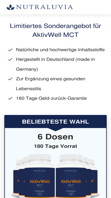 AktivWell MCT kaufen - Das Original in bewährter Qualität von Nutraluvia. Bis zu 50 % sparen & AktivWell MCT günstig kaufen.
