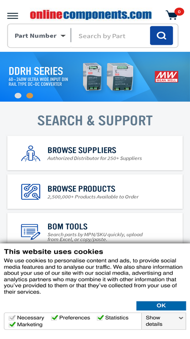 electronic components distributor with a huge selection in stock and ready to ship with no minimum orders. new electronic parts added daily.