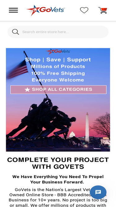 63%discover the nation's largest veteran-owned online store at govets.com. shop millions of products across categories like office supplies, furniture, electronics, and more, all with 100% free shipping within the 48 contiguous united states. as a socially responsible business, we support veteran non-profit causes. explore govets for quality products and a commitment to service and veterans' causes.