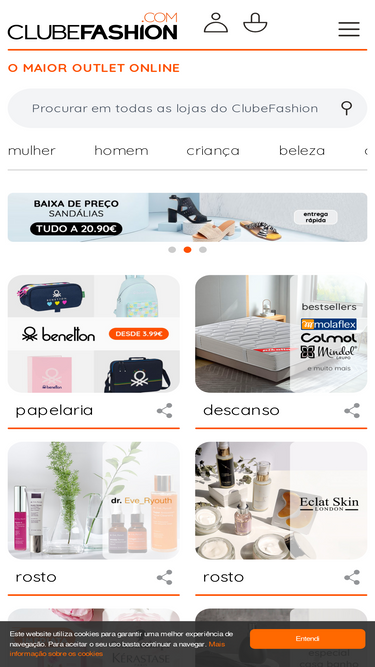 100%preços outlet | descontos | promoçoes - moda, roupa, beleza, cosmética, perfumes, casa, decoração, mobiliário e lazer. compras online. portes grátis.