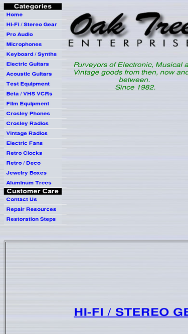 purveyors of vintage, refurbished / restored stereos with warranty, pro-audio, guitars, keyboards and other musical instruments, amps, effects, vintage audio parts, microphones, radios, test gear, film projectors, deco / retro clocks, movie / tv / production props and much other stuff!