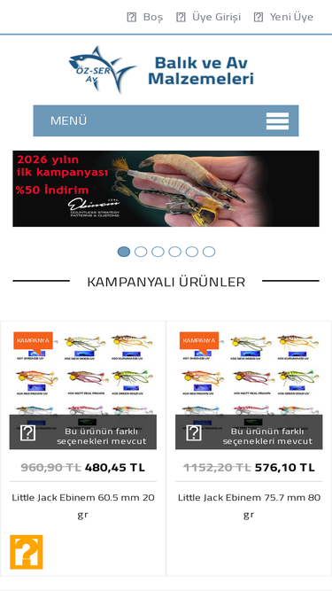 96%olta kamışından olta makarasına, sahte yemlerden olta iğnesine ve misinadan organik balık avı yemlerine ve hatta kamp çadırlarına kadar uygun fiyata sizleri bekliyor