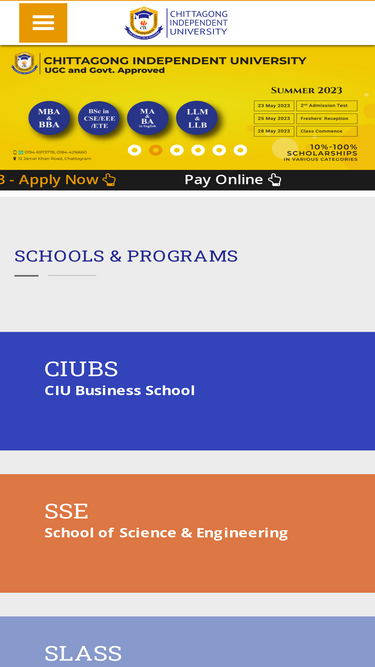 76%chittagong independent university (ciu), a renowned private university in chattogram's bustling educational hub of jamal khan, offers various undergraduate and postgraduate programs in business, engineering, liberal arts & law.