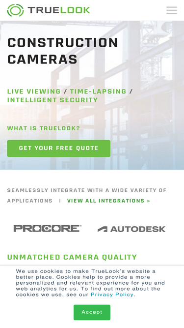 Just plug the camera into a power source and your camera will come online automatically. Our services take over from there. Contact TrueLook for more info!
