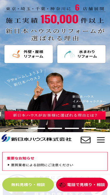 77%新日本ハウスのリフォーム東京・埼玉・千葉・神奈川でするなら新日本ハウスへ!施工実績15万件超。施工事例とお客様の声多数掲載 地域密着で対応