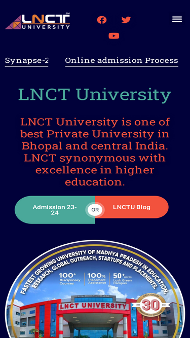 98%FAQ’s -LNCTU Top Rated Private University Bhopal - When does the admission start in LNCT University for PG and UG program and how does one apply ? Read More ....
