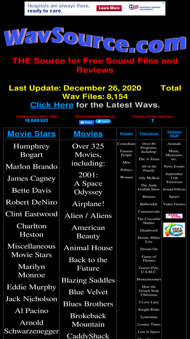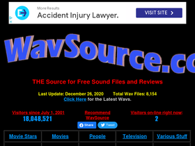 91%wavsource.com is a comprehensive, yet free, compilation of thousands of choice sound bites and sound clips from all sorts of sources, including movies, tv, news, sports, sound effects, historical events, computer system events, and much more. categorized, searchable, and freely downloadable.