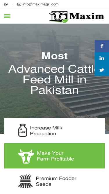 91%founded in 2009, with a passion to contribute to pakistan’s livestock and agriculture sector, maxim international is a joint venture of european agro ventures, babar ali foundation and the blue link, netherlands. maxim’s primary objective is to provide trusted animal feeds, fodder seeds and customized nutrition solutions to help maximize the performance of small and commercial farmers. we have developed strong strategic alliances with global leaders in the feed and seed industry over the years strengthening our business profile. we work closely with industry pioneers like world wide sires (wws), elders, artex, selected seeds and more. as our profile grows so does our outreach, maxim is aggressively expanding its export interests in the asian and middle east markets. we occupy a unique position across the agri industry of pakistan. our focus is to increase the economic well-being of the farmers, improve the sustainability of food production and all along that chain add value and drive profit for our partners. we do this by investing in new sciences, driving the use of technology and using data to deliver insight and drive real time improvements. we’re the fastest growing agriculture company, and we’re expanding our local footprint to become a major agri-business. maxim’s biggest test has been to challenge the conventional feed practices in the country. while we continue to face resistance, we are proud to stay firm in our stance against aflatoxin and blood meal content in animal feed. maxim continues to educate farmers about the dangers to both animals and humans of using these contents in feed. to ensure that our product quality remains uncompromised, maxim follows strict standards. our research and quality consists of highlight qualified veterinary professionals and microbiologists that keeps a close check on all ingredients. our biggest strength has been our unique blend of highly motivated and skilled professionals in sales, supply chain, production and more. the