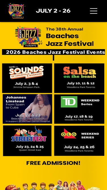 97%The Beaches International Jazz Festival is one of Canada's largest Free Jazz Festivals with nearly 1,000,000 attendees, throughout its month-long span. The Festival takes place across a number of venues within the beach area and also along a two kilometre stretch of the Beach mainstreet during StreetFest - Queen Street East.