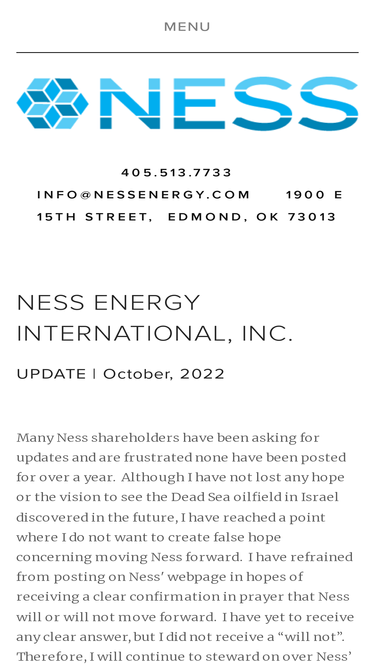 76%UPDATE There are no changes in the status of Ness Energy International, Inc. or the lawsuits. David M. Boyce President Ness Energy International, Inc.