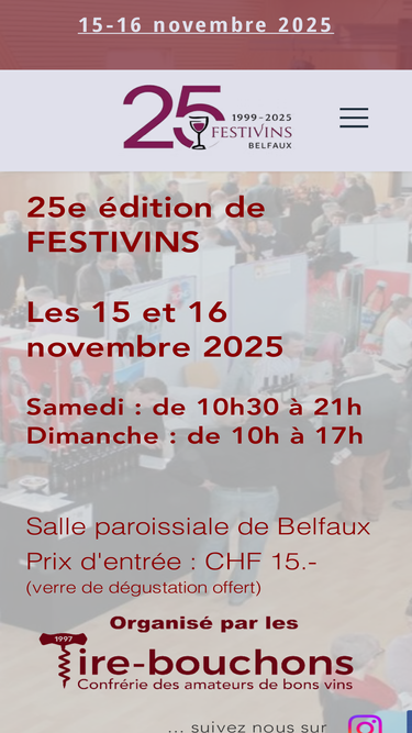 Festivins est votre salon annuel de dégustation de vins suisses à Belfaux qui aura lieu du 19 au 21 novembres 2021. Plus de 40 vignerons vous y attendent pour vous présenter leurs petites merveilles.