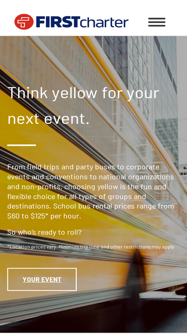 95%Let us help you plan your next event with a charter, shuttle, or party bus from First Charter. Get a free, no obligation quote. Trusted group travel for less!