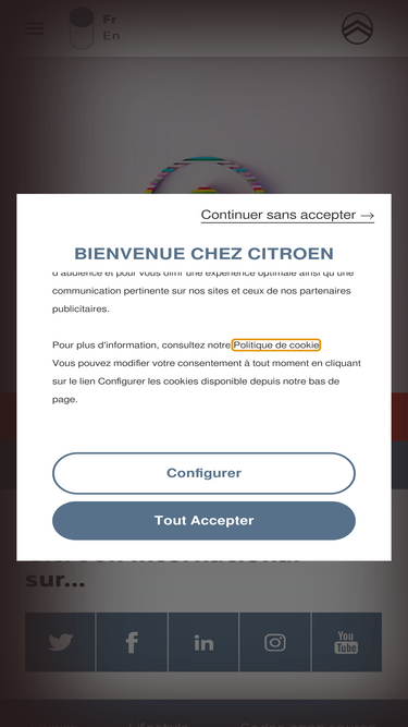 100%Citroën.com est le site International de Citroën. Il permet de découvrir l'univers de la Marque (Business, Racing, ... ), de consulter ses actualités et d'accéder au site des pays où Citroën est implanté.