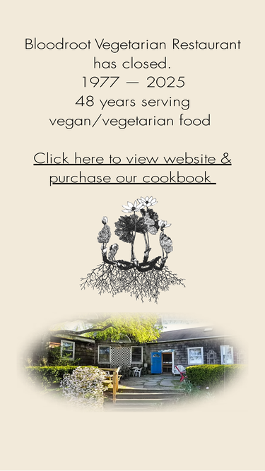 82%Bloodroot Restaurant specializes in ethnic vegan and vegetarian cooking. To appropriately make use of local ingredients, our menu changes regularly to reflect the seasons. We welcome your visit!