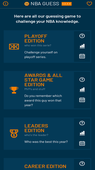 73%games for nba addicts! inspired by wordle and actorle. every day you can play various mini games to challenge your nba knowledge.