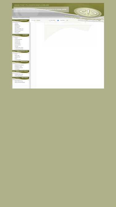 ol� webmaster! procurando por recursos para turbinar seu site? o portaldigidesign tem as melhores soluções em php, asp, javascript, css, coldfusion, dicas de webdesign, layouts prontos, flash, applets, serviços gratuitos como indique o site, usuários online, extensões e tutoriais de dreamweaver, corel draw, swishmax, fireworks, photoshop, programa��o e muito mais!