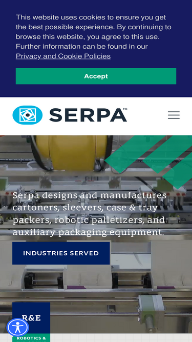 Serpa manufacturers automated packaging machines, including cartoners, sleevers, case and tray packers, palletizers, and auxiliary packing equipment.