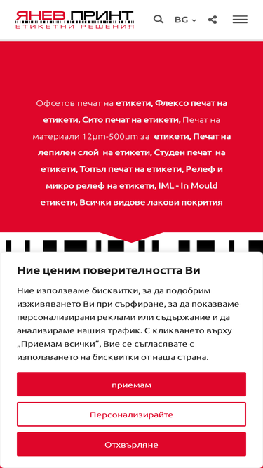 52%Печат на етикети и изработка на етикетиЯНЕВ ПРИНТ ЕООДАдрес: Варна, 9002, ген. Столетов 8 Телефон: 052 643828Телефон: 0877 777 024 email:...