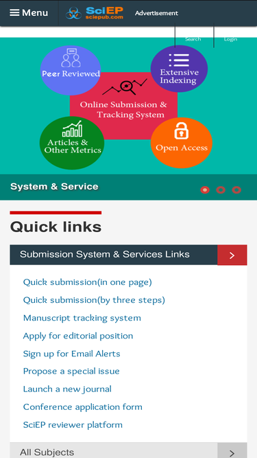 90%science and education publishing is an academic publisher of open access journals. it also publishes academic books and conference proceedings. sciep currently has 100+ open access journals in the areas of earth &environmental sciences, medicine &healthcare, biomedical &life sciences, computer science &communications, chemistry &materials science, engineering, physics &mathematics, business &economics and social sciences &humanities.