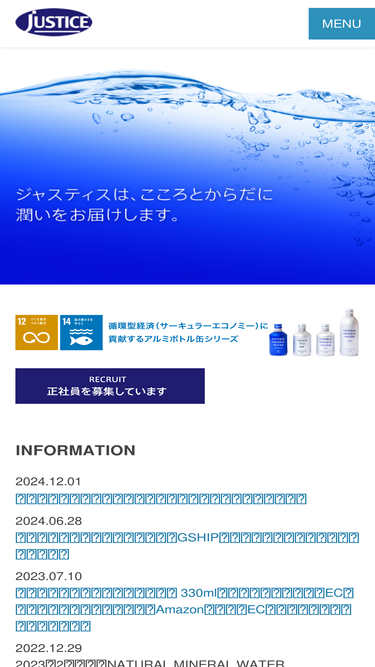 87%株式会社ジャスティスが販売している脱プラスチックに貢献する、アルミボトル缶ナチュラルミネラルォーターのWEBサイト。自社オリジナルボトルの製造も可能。地球環境に配慮したリサイクル可能なナチュラルミネラルォーター製品です。