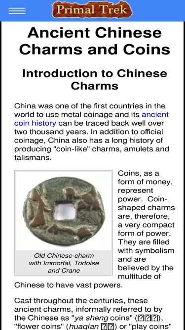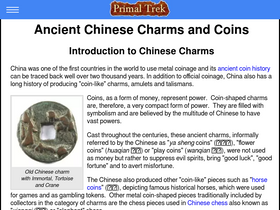 100%historical information and many images of old chinese charms, coins, paper money, horse coins, chess pieces, and korean coins