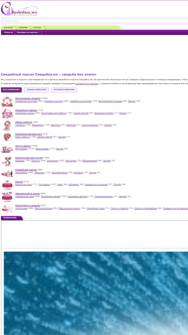 100%Свадебный портал Свадебка.ws – популярный веб-проект для подготовки к свадьбе. Здесь молодожены найдут все для организации свадьбы, а свадебные компании могут зарегистрироваться в нашем каталоге. Портал Свадебка.ws – все для свадьбы и о свадьбе!