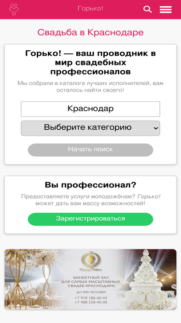 41%свадьба в краснодаре на горько.ру — большой выбор свадебных компаний и мастеров в краснодаре. актуальные цены, контакты, отзывы, портфолио работ