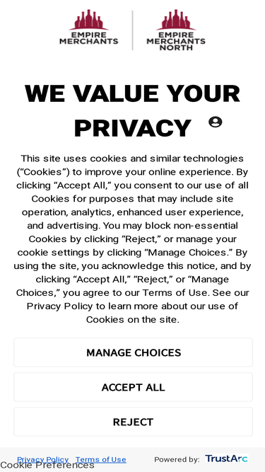 100%- Empire Merchants is the premier wine and spirits distributor in the metropolitan New York area with roots going back to the end of Prohibition. With more than 1,500 dedicated employees and state-of-the-art facilities, Empire Merchants has become synonymous with both service and quality and has earned the loyalty of more than 10,000 area restaurants, bars, hotels, nightclubs and retail outlets.