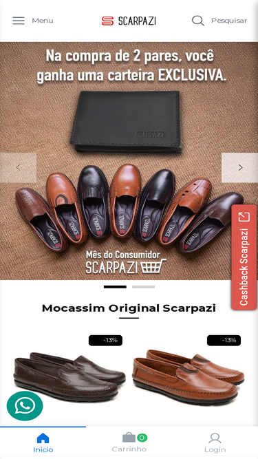 64%aqui na scarpazi você encontra os melhores calçados de couro masculino. chinelos, sandálias, mocassins, sapatos, botas e muito mais. parcelas de até 6x sem juros. compre com segurança em nosso site e receba no conforto da sua casa.