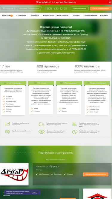 62%автоматизация предприятий общественного питания, кинотеатров, ресторанов, отелей и магазинов - r-keeper