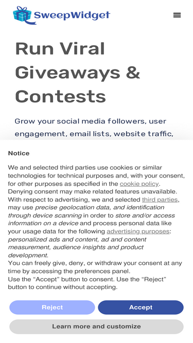76%Webhooks Receive real-time HTTP POST notifications when users enter your giveaway, complete tasks, or finish all entries. Available on Enterprise plans. PlanEnterprise Overview SweepWidget provides two ways to receive real-time event data from your giveaways: Server-side webhooks – HTTP POST requests sent from our server to yours. Work on both embedded widgets and hosted landing pages. Best for backend workflows like CRM syncing, email triggers, and database updates. Client-side JavaScript callbacks – Browser events fired on the page where the widget is loaded. Best for frontend actions like firing tracking pixels, showing custom UI, or triggering analytics events. Both systems fire on the same three events and return the same data. You can use one or both depending on your needs. On this page: Setup Events Payload Format Request Headers Signature Verification JavaScript Callbacks Signing Secret Troubleshooting Setup Server-side webhooks Go to Integrations in your dashboard and click the Webhooks card. Enter your endpoint URL (must use HTTPS) and click Save. Copy the Signing Secret to verify webhook signatures on your server. Use the Send Test button to send a test payload and confirm your endpoint is receiving requests. Note: Webhooks are configured at the account level. Once set up, they fire for all giveaways on your account. JavaScript callbacks No dashboard configuration needed. Add an event listener to the page where your SweepWidget is embedded. See the JavaScript Callbacks section below for code examples. Events All three events fire automatically. There is no per-event toggle. Both webhooks and JS callbacks fire on the same events. Event Fires when entry_submitted A user submits the initial entry form (email, name, etc.) task_completed A user completes a bonus entry task (follow, visit, share, etc.) all_entries_completed A user has completed every available task in the giveaway Payload Format Both webhooks and JS callbacks return the same data for each even