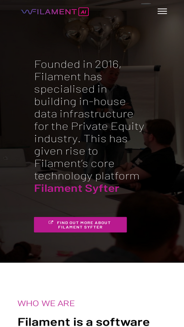 78%The Future of Deal Sourcing and Monitoring in Private Equity – Webinar Hosted by In this webinar Valu8 and Filament Syfter will discuss: The Future of Deal Sourcing and Monitoring in Private Equity – Developing a Unified Data and AI Framework. Meet your speakers Fredrik Wik Valu8 Chief Product Officer Martin Pomeroy Filament Syfter Chief…