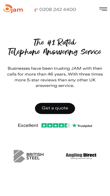 83%Trusted by UK businesses for 45+ years, JAM offers 24/7 telephone answering with more 5★ reviews than any other provider.