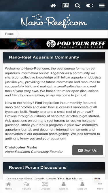 100%join the nano-reef community, a forum of saltwater reef aquarium hobbyists sharing experiences building small nano reef tanks. find an extensive library of knowledge in our articles and forum discussions, inspiring monthly featured marine aquariums, and guidance from supportive hobbyists as you build a reef tank of your own.