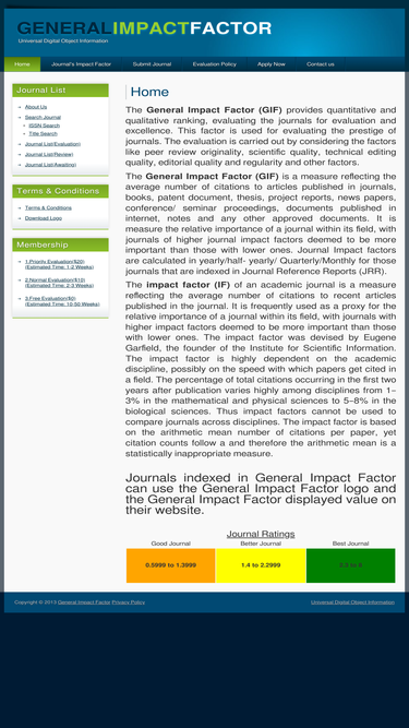 95%the general impact factor (gif) provides quantitative and qualitative ranking, evaluating the journals for evaluation and excellence. this factor is used for evaluating the prestige of journals. the e