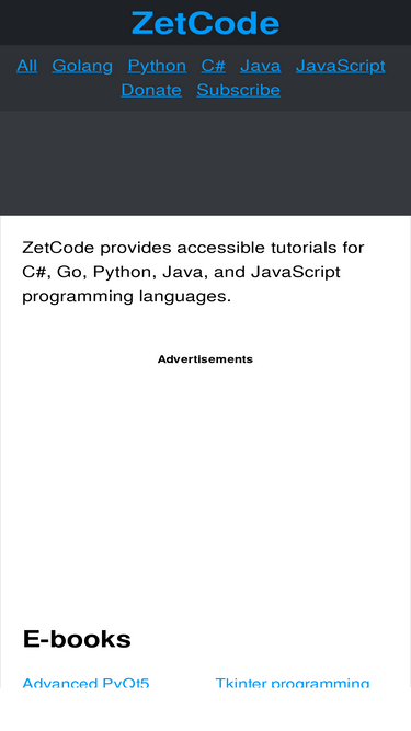 96%zetcode provides accessible tutorials for c#, go, python, java, and javascript programming languages.