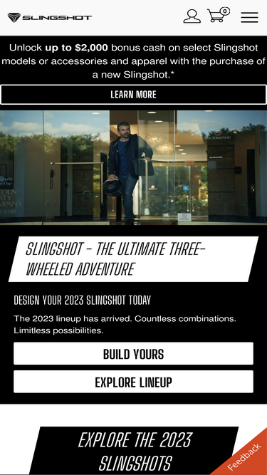 86%The Slingshot three-wheeled motorcycle is unlike anything else on the road. Take the wheel and let it set you loose in ways you'd never imagine.