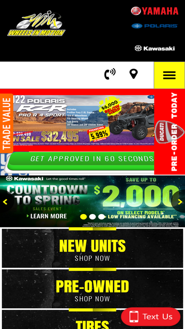 90%wheels in motion offers the finest powersports vehicles for sale with full parts and service departments! come visit us in chatsworth, ca!