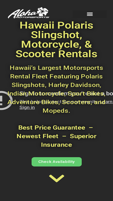 84%Rent Polaris Slingshots, motorcycles and scooters across Maui, Oahu and the Big Island. Hawaii’s largest motorsports rental fleet. Book online today