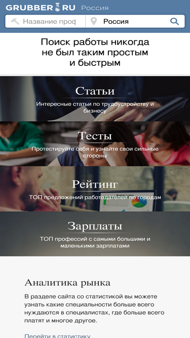 97%поиск работы в россии. огромная обновляемая база вакансий. свежие и бесплатные предложения на grubber.ru