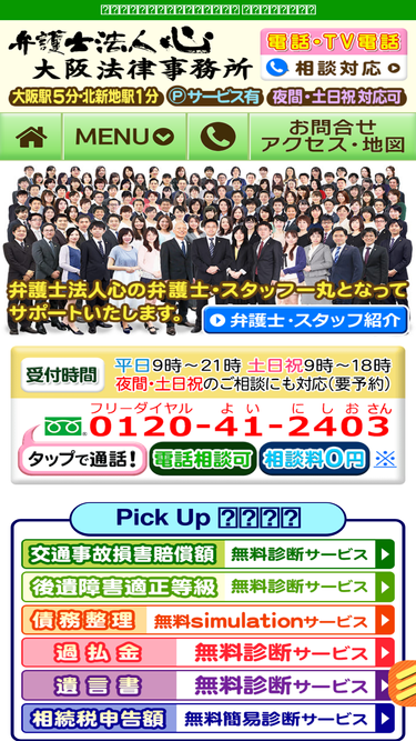 大阪駅5分・弁護士への初回相談無料!夜間・土日祝相談可。電話相談にも対応。受付:平日9時〜21時、土日祝9時〜18時まで。