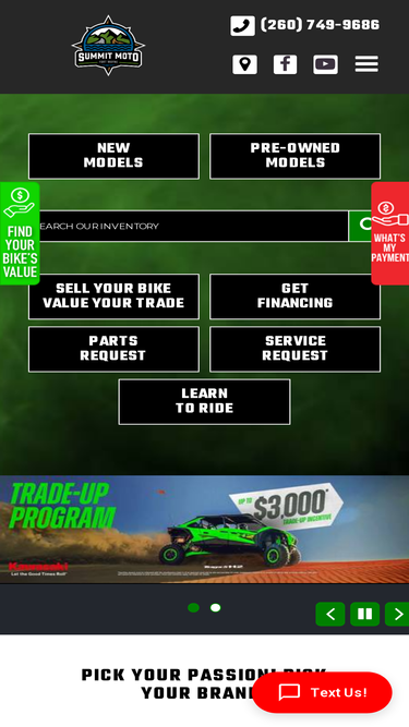 80%Ehlerding Motorsports is a Kawasaki and Honda dealer of new and pre-owned ATVs, UTVs, Motorcycles, PWCs, Trucks, Trailers and Scooters as well as parts and service in Fort Wayne, Indiana and near Toledo, OH, Indianapolis, IN, Windsor, Canada, Detroit, MI, Columbus, OH, Chicago, IL, Cincinnati, OH, Cleveland, OH.