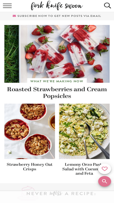 98%Welcome to Fork Knife Swoon!! A food blog inspired by approachable, seasonal cooking, with simple recipes from sweet and ingulgent desserts to easy weeknight dinners.
