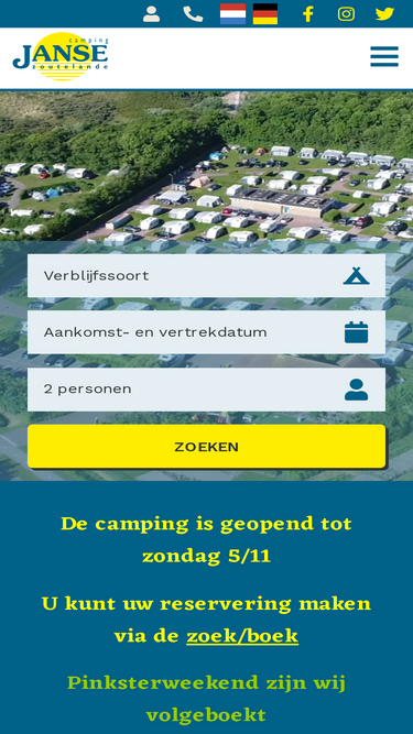 99%Op 12 kilometer van Middelburg , Vlissingen en Domburg, ligt net 2 km buiten het dorp Zoutelande en 3 km vanaf Westkapelle, Camping Janse. Aan zee en strand"