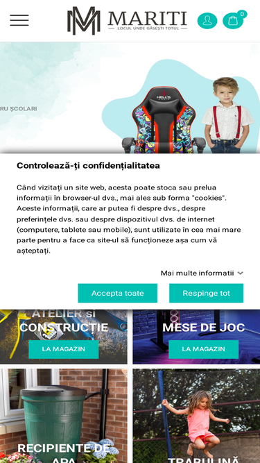 Magazin electronic cu covoare, mobilier, accesorii pentru jocuri, accesorii de uz casnic, unelte de mână, trambuline, leagăne, piscine, scule electrice