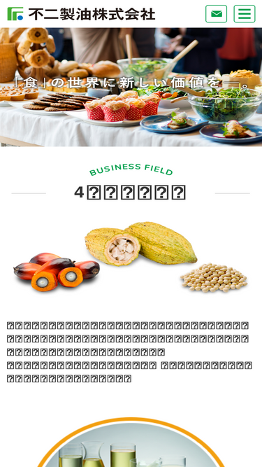 89%不二製油は、植物性油脂、業務用チョコレート、乳化・発酵素材、大豆加工素材の4事業の食品素材を世界で展開しています。お客様と共に食シーンに新たな価値をつくり出しています。